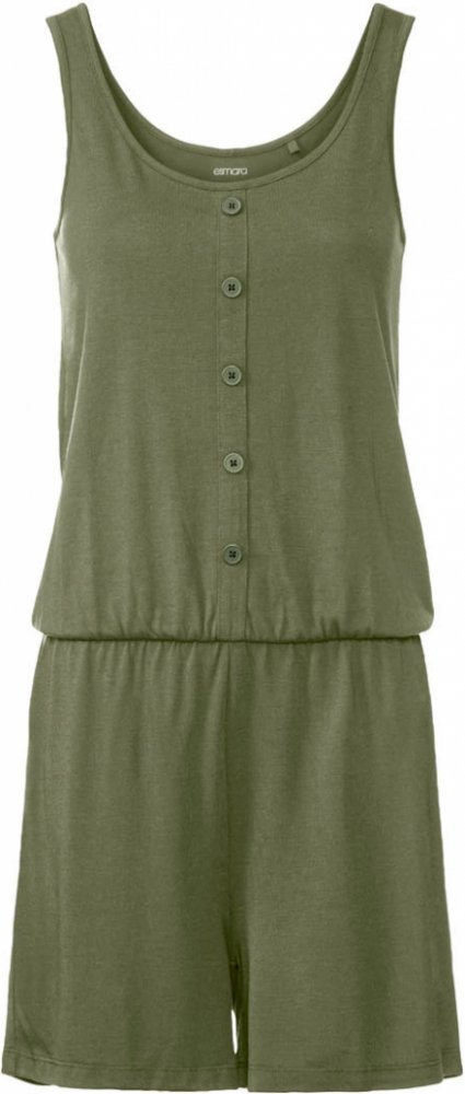esmara Dámský overal Mírně projmutý střih Kulatý výstřih Příjemně měkký a hebký díky viskóze Vzorovaná varianta Guma a šňůrka na zavázání v pase Postranní kapsy Zelená; námořnická modrá Kulatý výstřih a ozdobné knoflíky Guma v pase Materiál 65 % polyester, 35 % viskóza Lenzing™ Ecovero™ Velikost XS 32/34–L 44/46