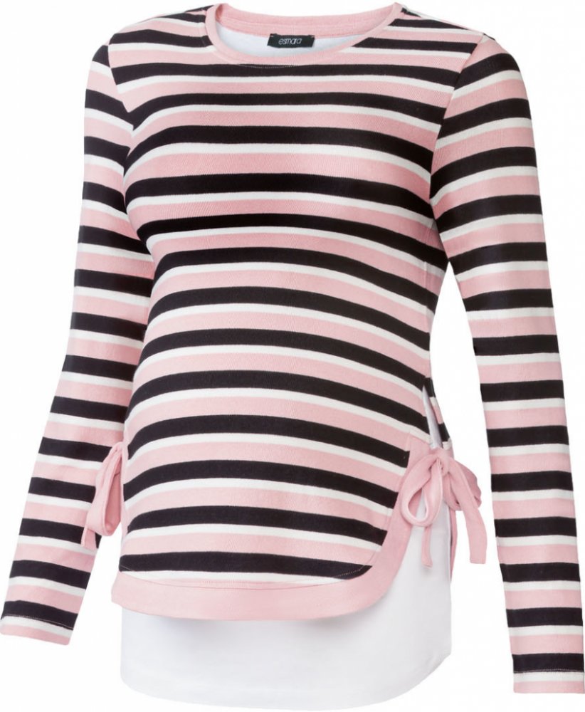 ESMARA® Dámský těhotenský svetr Příjemný na nošení díky vysokému podílu bavlny Měkká, jemná pletenina Pohodlný kulatý výstřih Skvěle sedí díky elastanu LYCRA® Varianta středně šedá; proužek/černá/bílá/světle růžová Dvouvrstvý vzhled s postranními pásky na zavázání pro nastavení velikosti Střih vhodný ke kojení Zpracovaný v 1 dílu Varianta starorůžová Postranní nabírání a šňůrka na zavazování –...