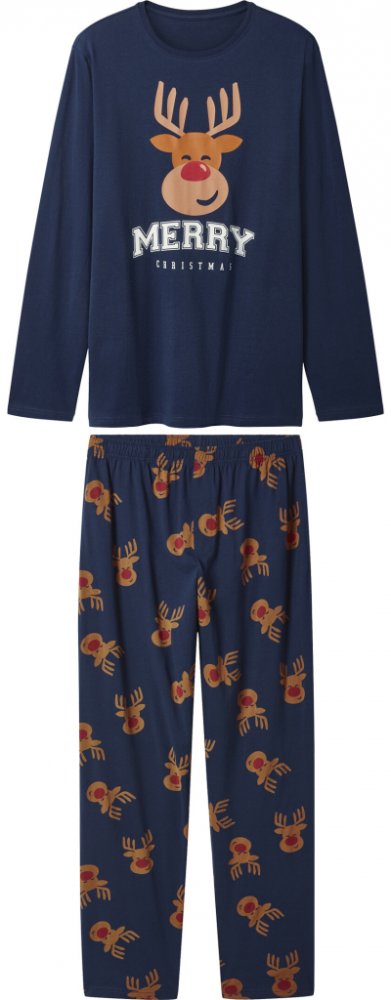 esmara Men Pánské vánoční pyžamo Vlastnosti Příjemné na nošení díky čisté bavlně Podporujeme udržitelné pěstování bavlny v Africe Vzor/bílá: manžety na koncích rukávů a nohavic Vlastnosti výrobku ;} Barva: navy modrá; zelená; vzor/bílá Vzor: navy modrá: celoplošný potisk - sob zelená: pruhovaná vzor/bílá: žakárový vzor Detail: čistá bavlna Výstřih: kulatý výstřih Tvar límce: bez uvedení Materiál: ...