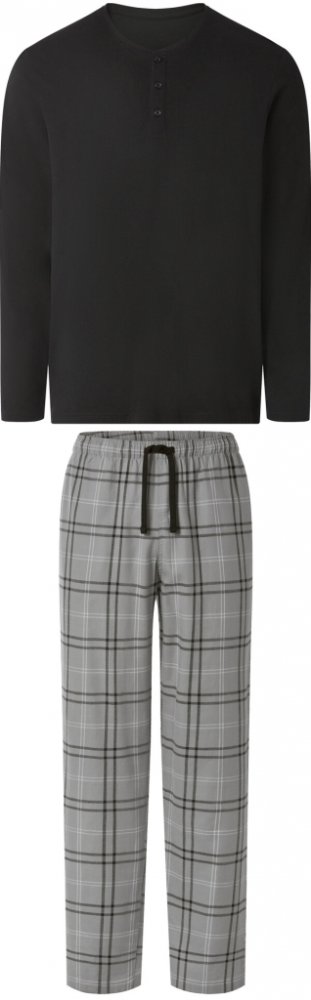 esmara Men Pánské pyžamo Vlastnosti Příjemné na nošení díky čisté bavlně Kalhoty z měkkého a hřejivého flanelu Postranní kapsy, elastický pas se šňůrkou na zavazování Podporujeme udržitelné pěstování bavlny v Africe Modrá/bílá: s náprsní kapsou Černá/šedá: knoflíková lišta s kontrastem Vlastnosti výrobku ; Barva: modrá/bílá; černá/šedá Vzor: pruhovaný Detail: modrá/bílá: s náprsní kapsou černá/šedá: k noflíková lišta s kontrastem Výstřih: kulatý výstřih Materiál: 100 % bavlna Pokyny pro péči: praní na max. 40 °C nebělit šetrné sušení v sušičce při max. 60 °C žehlení do 150 °C (stupeň 2). Lze použít napařovací žehličku nečistit chemicky Velikost: S (44/46) - XXL (60/62) Moje Lidl velikost – takhle jednoduše to jde Svoji velikost najdeš v Lidl tabulce velikostí .