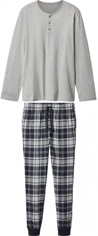 esmara ® Pánské pyžamo Vlastnosti Kalhoty z měkkého; hřejivého flanelu Kalhoty s pohodlným elastickým pasem, šňůrkou na zavazování a postranními kapsami Podporujeme udržitelné pěstování bavlny v Africe Navy modrá: Příjemné na nošení díky čisté bavlně Triko s výstřihem do V a potiskem Modrá: Příjemné na nošení díky čisté bavlně Triko s kulatým výstřihem a potiskem Šedá: Příjemné na nošení díky vyso...