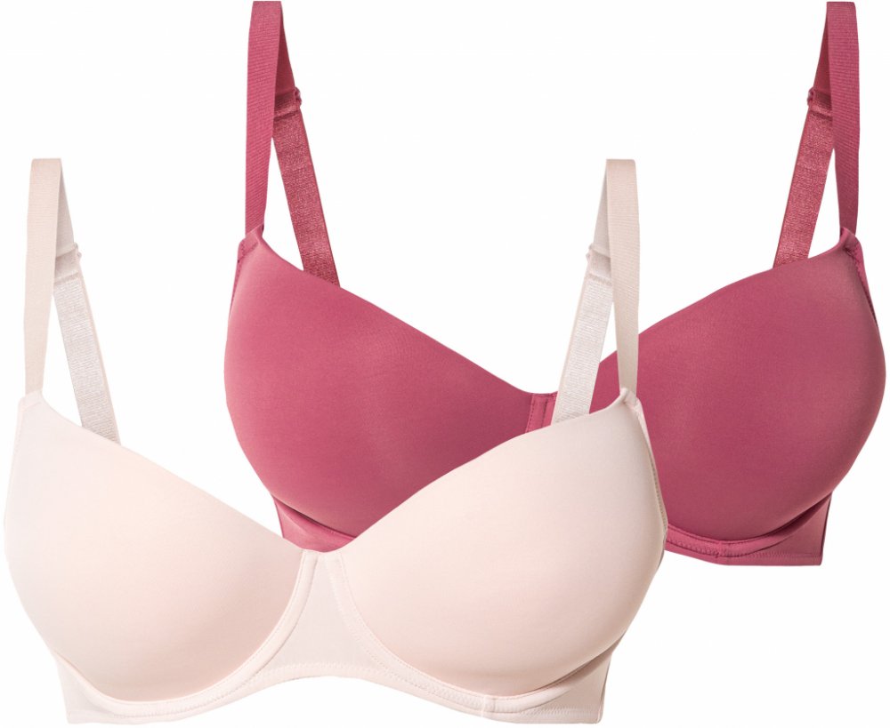 esmara ® Dámská podprsenka Xxl, 2 kusy Mírně tvarující pro vytvoření hezké siluety Polstrované košíčky Nastavitelná ramínka Skvěle sedí díky elastanu Lycra ® 2 kusy Materiál Vrchní materiál: polyamid, 10 % elastan Lycra ® Podšívka košíčků: polyester Podšívka postranních dílů: polyamid Podšívka zadních dílů: polyamid, 8 % elastan Lycra ® Velikost 85D - 95D
