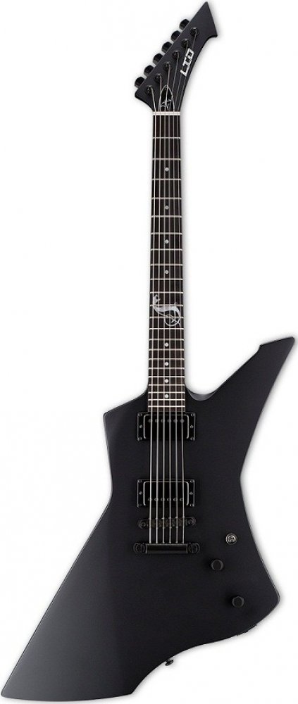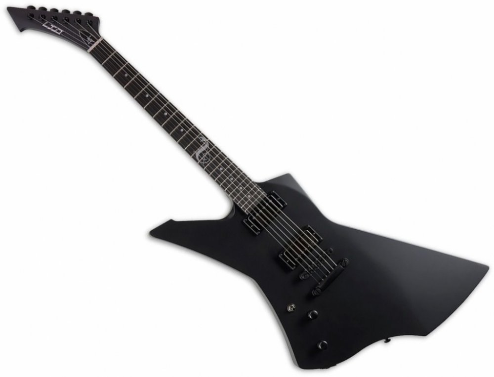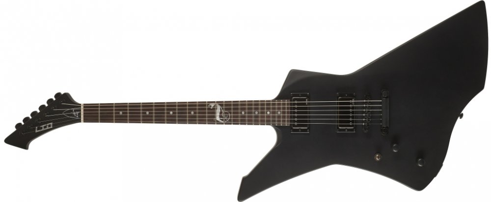 Elektrická kytara Snakebyte je signature modelem Jamese Hetfielda, kterého snad, díky jeho působení na postu zpěváka a rytmického kytaristy ve skupině Metallica, není třeba představovat. Tato kytara tedy rozhodně není žádné ořezávátko. Tělo této kytary je vyrobeno z mahagonového dřeva a je k němu lepený krk složený ze tří kusů mahagonu. Krk je osazen ebenovým hmatníkem a dvaadvaceti pražci velikosti extra jumbo. Menzura nástroje odpovídá rozměru 629 mm, nultý pražec je široký 42 mm. Kytara je vybavena aktivní elektronikou a dvěma humbuckery EMG, které lze ovládat pomocí dvou potenciometrů hlasitosti a třípolohového přepínače. Struny jsou uchyceny ve struníku a prochází přes pevnou kobylku tune-o-matic se zámky. K ladění slouží mechaniky LTD opatřené zámky strun, které brání jejich pohybu při navíjení a ohýbání.