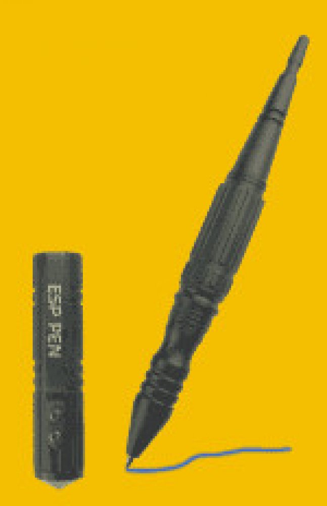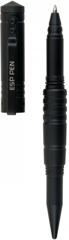 Taktické pero ESP je dokonalou kombinací kuličkového pera a kubotanu. Jedná se o nenápadný obranný prostředek, který budete mít vždy po ruce, a přesto nepřilákáte pozornost ostatních. Pero je vyrobené z odolného duralu, který se používá při výrobě letadel. Jeho povrch je navíc zušlechtěn speciálním typem povrchové úpravy – otěruvzdorným eloxováním. Perem tak můžete provádět různé údery či tlaky na nervové body útočníka. Ergonomický tvar a výrazné vroubkování poskytují uživateli jistý úchop. Šroubovací uzávěr, který je opatřen speciálním hrotem a lze tak použít k rozbíjení skleněných překážek, je možné našroubovat na oba konce taktického pera. Na uzávěru se také nachází klip umožňující bezpečné uchycení pera např. v náprsní kapse. Kvalitní vyměnitelná náplň modré barvy nabízí šířku stopy 0,5 mm. Specifikace: Délka 160 mm Průměr 15 mm Hmotnost 50 g