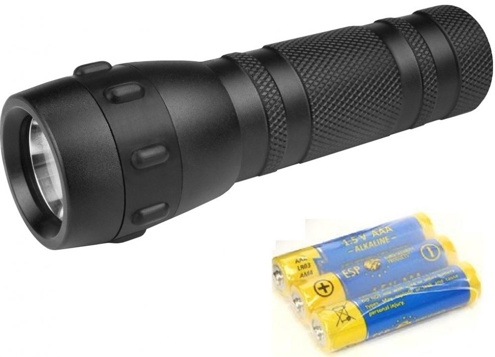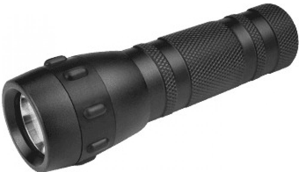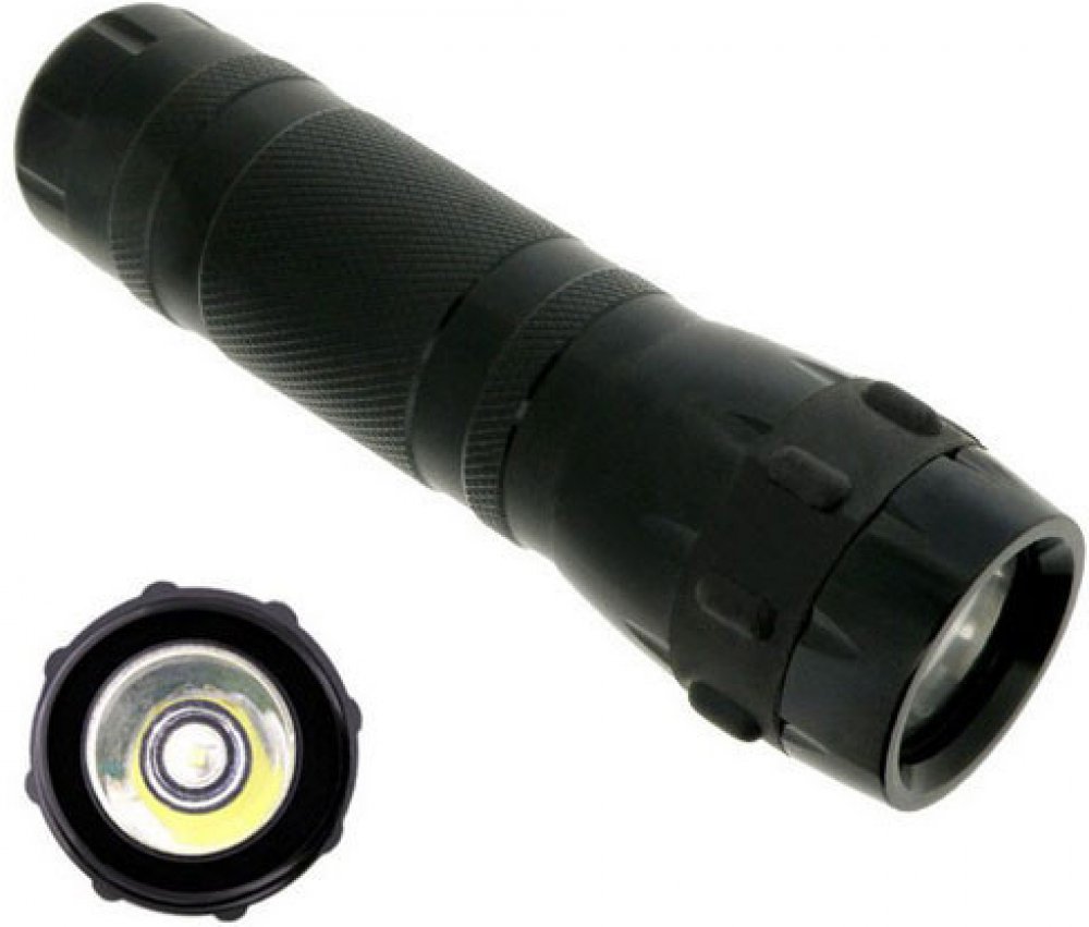 Taktická svítilna s výkonným 3W LED čipem Cree, který poskyuje svítivost až 200 lm. Osvítí objekt ostrým paprskem na vzdálenost cca 100 metrů. Vypínač chráněný gumovým krytem je umístěný v koncovce.