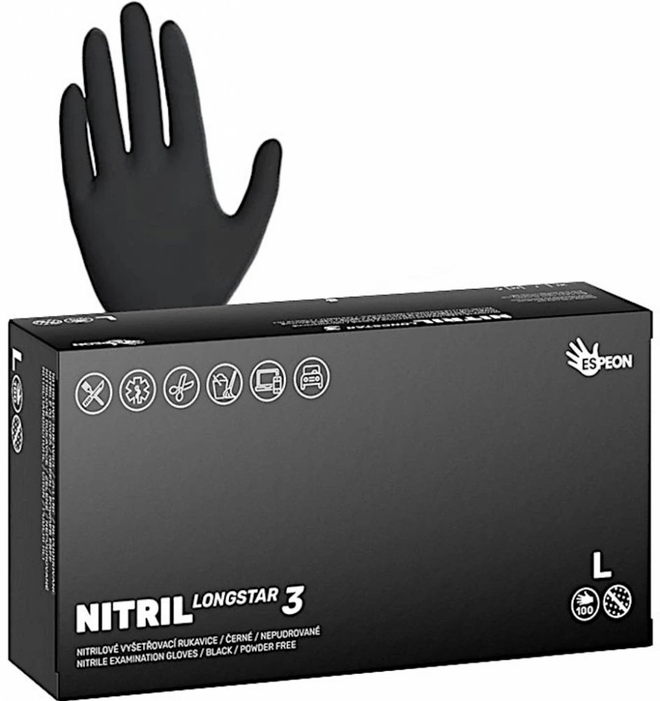 Espeon NITRIL LONGSTAR3 nepudrované černé 100 ks