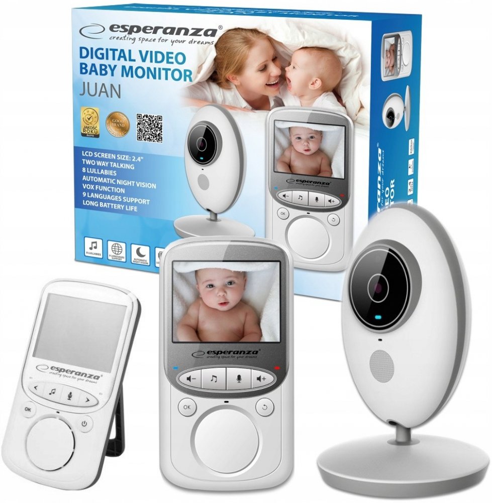 Dětská chůvička Esperanza JUAN vám pomůže poskytnout vašemu dítěti vynikající péči a zároveň vám umožní volný pohyb po domě a plnění dalších povinností. Zařízení má mnoho užitečných funkcí, jako je noční monitorování, obousměrný interkom. Díky nim budete nejen kontrolovat, co se s vaším dítětem děje, ale také ho uklidnit svým hlasem nebo hrát na dálku ukolébavku.