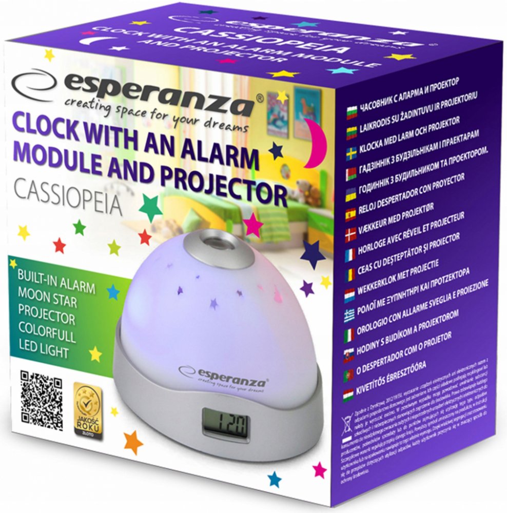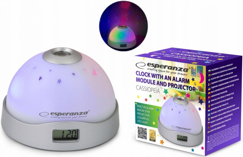 Dětský budík s projektorem noční oblohy a času na strop je inovativní produkt, který poskytuje dětem nejen funkcionalitu budíku, ale také zážitek z projekce barevně podsvícené noční oblohy přímo na strop jejich pokoje.