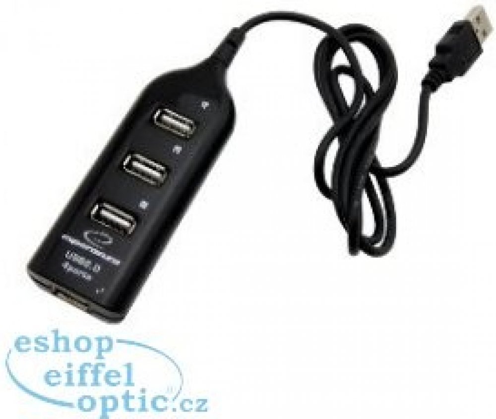 Snadno použitelný USB hub 2.0 s možností připojení čtyř dalších zařízení s USB výstupem. Moderní design skvěle doplní další příslušenství na vašem stole. Ideální pro uživatele stolních počítačů a notebooků.Zvyšuje možnosti vašeho počítače bez nutnosti investice do drahých karet s dodatečnými USB porty.Není potřeba instalovat ovladače – stačí připojit a používat.
