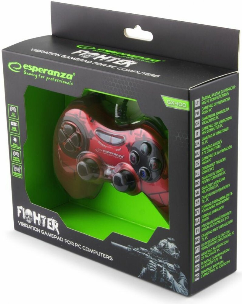 Vibrační gamepad k PC s USB FIGHTER, červenýFunkční gamepad FIGHTER s vibracemi pro PC.