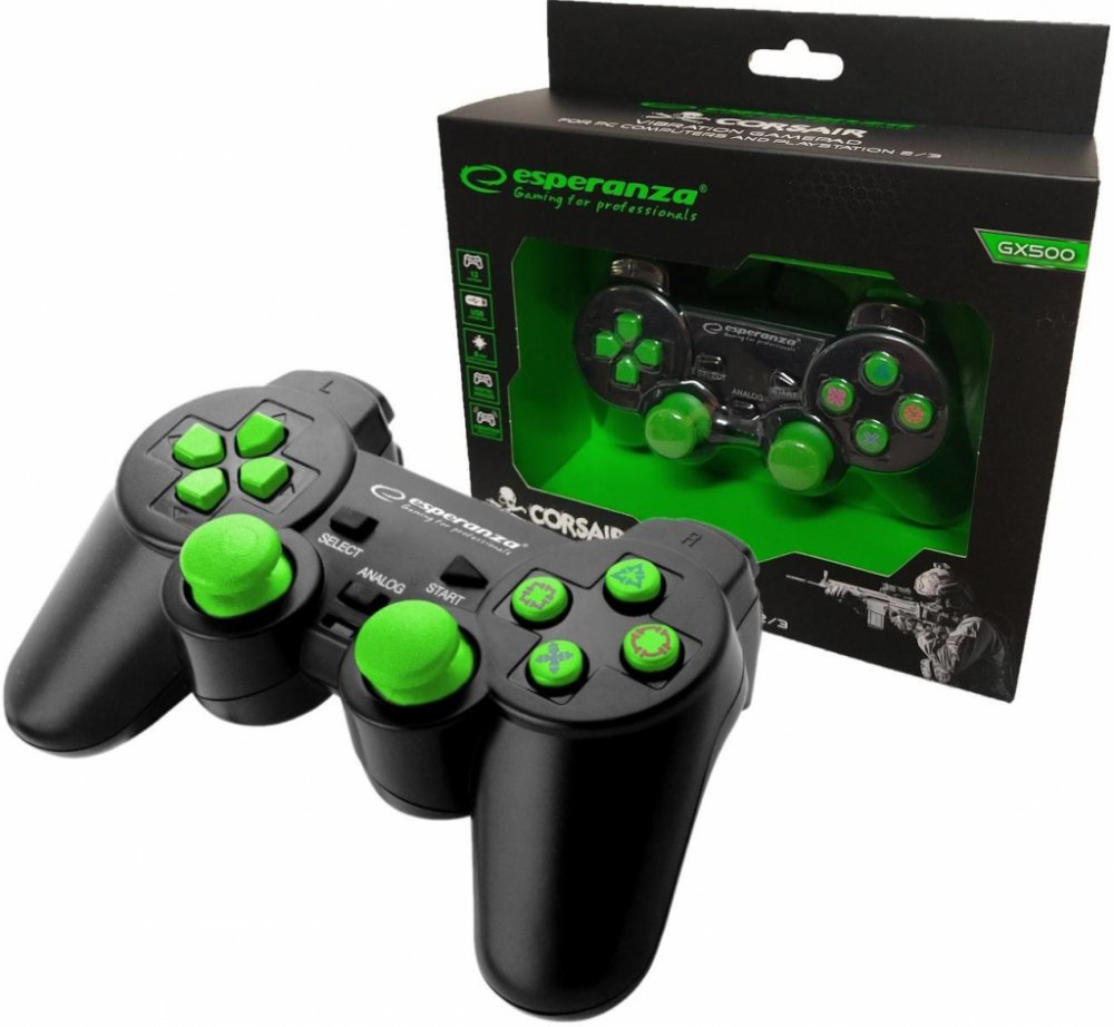 2 analogové páčky, 12 akčních tlačítek (včetně těch na analogách), 2 režimy (analog, digital), 8 směrový d-pad pro snadný přístup do menu.