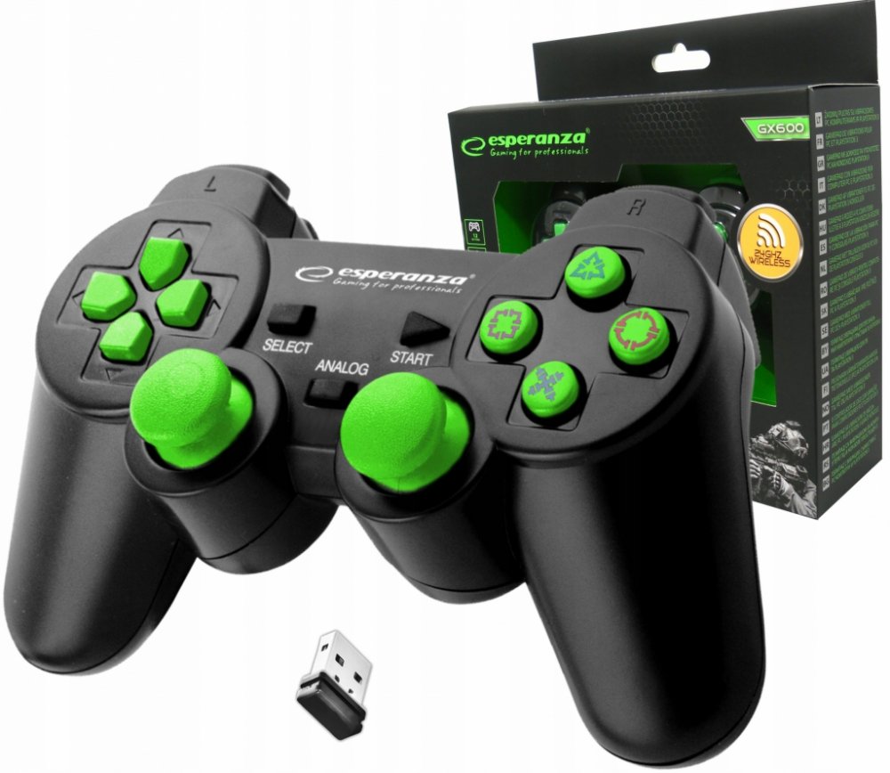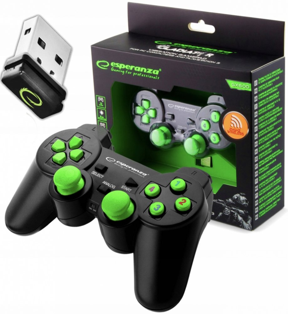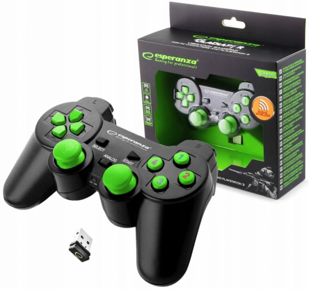 Discover a new dimension of gameplay with the Esperanza EGG108G wireless gamepad. Available in a stylish black-green color scheme, this ergonomically designed controller offers an unparalleled gaming experience on both your PC and PS3 console. Equipped with 2.4GHz connectivity technology, the EGG108G gamepad provides smooth and reliable gaming without the limitations of cables. Its advanced features, such as vibration that responds to in-game action and 12 action buttons, make every game exciting.