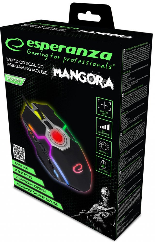 Esperanza optické 8 7200 dpi kabelové myši černé vhodné pro praváky 95 g
