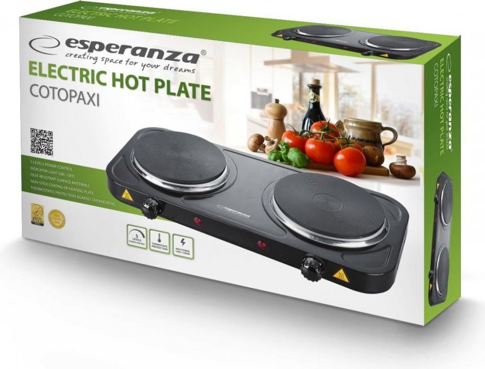 Vařič elektrický dvouplotýnkový ESPERANZA Cotopaxi EKH004K