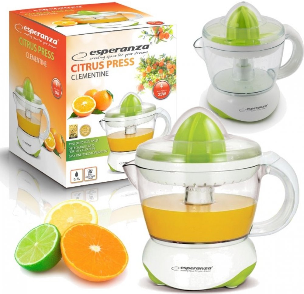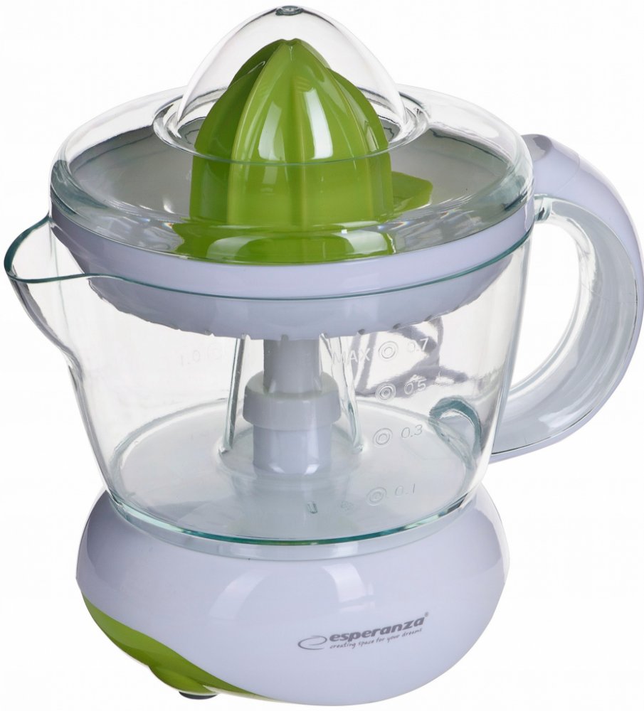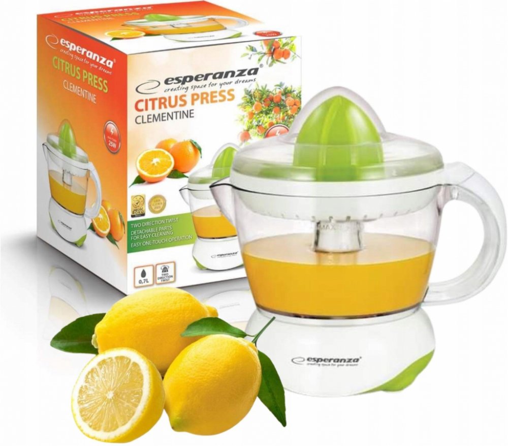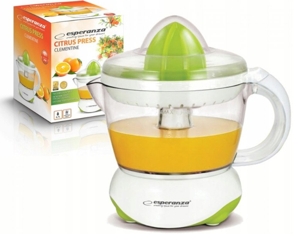 Začněte nový den podávání zdravé vitamínové šťávy připravené doma. S extraktorem Esperanza získáte čerstvou citrusovou šťávu rychle a efektivně kdykoli budete chtít. Je vybaven univerzálním kuželem pro velké a malé citrusové plody. Pro lepší výkon se kužel otáčí automaticky na pravou nebo levou stranu. Naše citrus je v kuchyni nezbytná pro ty, kteří si cení vlastního zdraví a zdraví svých blízkých...