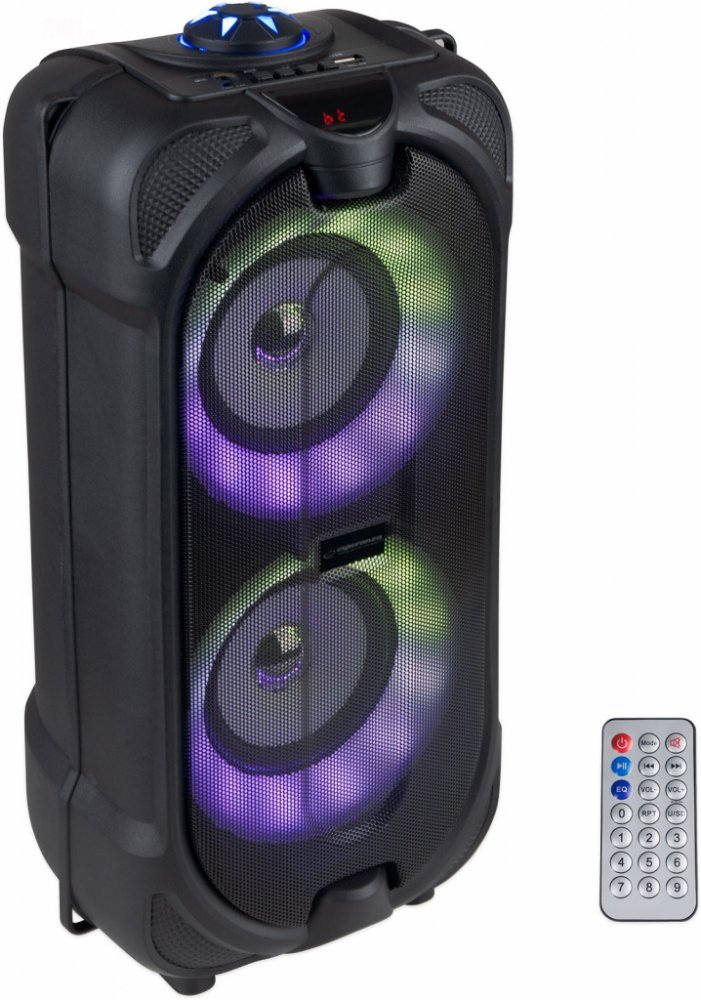 Reproduktor je vybaven barevnými LED diodami, které vytvářejí efektní světelné show, ideální pro každou párty.