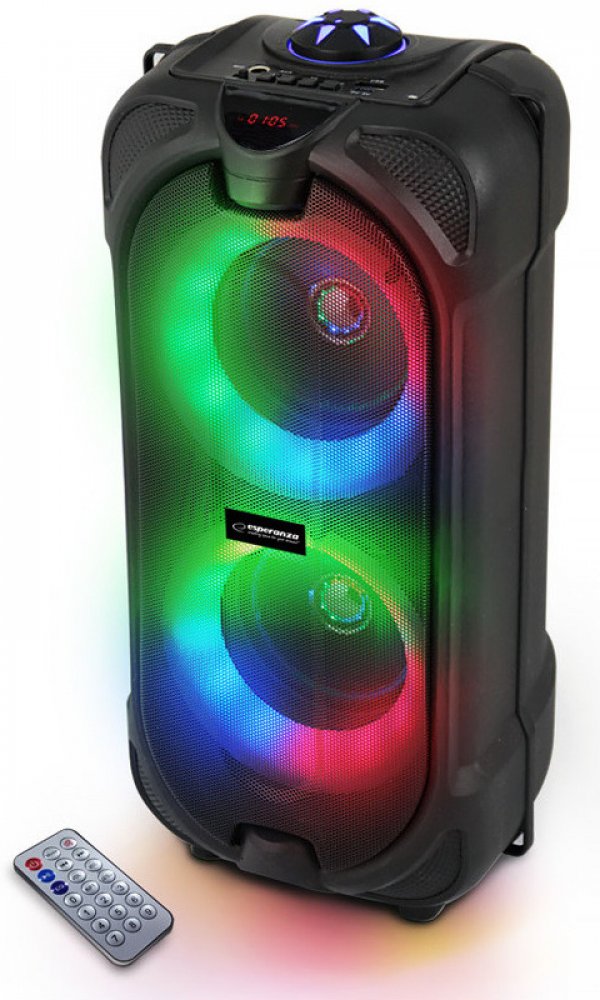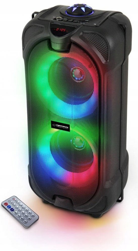 Bezdrátový Bluetooth reproduktor Esperanza Rythm vás okouzlí působivým LED RGB osvětlením. Tento všestranný audio přístroj nabízí přehrávání hudby ze smartphonů či tabletů a podporuje různé formy připojení, včetně microSD karet.
