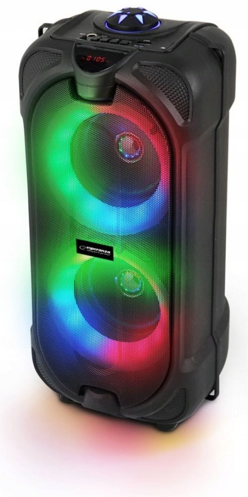 Bluetooth reproduktor Esperanza Rythm je ideální volbou pro milovníky kvalitního zvuku a efektivního designu. Díky FM rádiu a portu na mikrofon se skvěle hodí na karaoke večery. Profily Bluetooth: A2DP, AVRCP, HFP, HSPVerze Bluetooth: 5.0Mikrofonní vstup pro karaoke.Zásuvka USB, AUX a TFT pro co nejširší možnosti přehrávání. Zajímá vás zvukový výkon? Tento přístroj má výstupní výkon 10 W a přenosovou frekvenci v rozsahu 280 Hz - 16 kHz.SpecifikaceFunkce FM rádia:87.5 - 108 MHzMoc Bluetooth vysílače:3 dBmFrekvence vysílače Bluetooth:2.402 - 2.480 GHzMaximální dosah:do 10 mVestavěný akumulátor:1800 mAhNapětí nabíjení:5 VČas nabíjení:2.5 - 3.5 hČas přehrávání:do 5 hRozměry:185 x 150 x 398 mm
