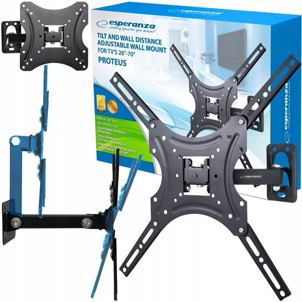 ✅ SILNÝ NÁSTĚNNÝ DRŽÁK POLSKÉ ZNAČKY „ESPERANZA“ S NASTAVITELNÝM ÚHLEM SKLONU AŽ DO 15°