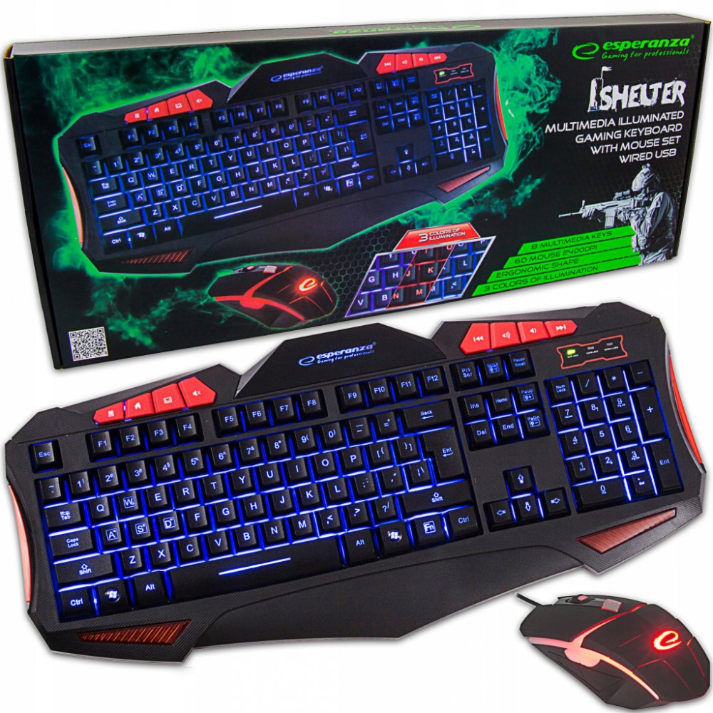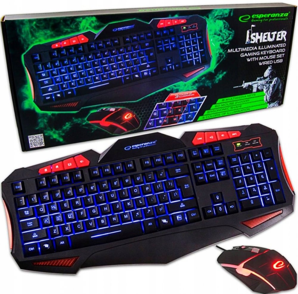 DRÁTOVÁ MULTIMEDIÁLNÍ KLÁVESNICE PRO HRÁČE S MYŠI USB SHELTER Pohodlná, na dotek příjemná, kvalitní USB klávesnice s drátovou 6D myší.