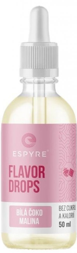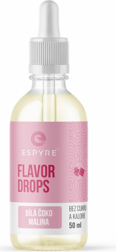 Espyre Flavor Drops bílá čokoláda a malina 50 ml. Flavor Drops jsou kapičky, které slouží k ochucení a oslazení jakéhokoliv jídla nebo nápoje. Skvěle se hodí třeba do kaší, jogurtů, kávy, vody nebo je můžeš použít třeba při pečení - fantazii se v tomto směru meze nekladou. Jejich velkou výhodou je, že k ochucení stačí opravdu minimální množství, takže ti lahvička vydrží pěkně dlouho. Flavor Drops ...