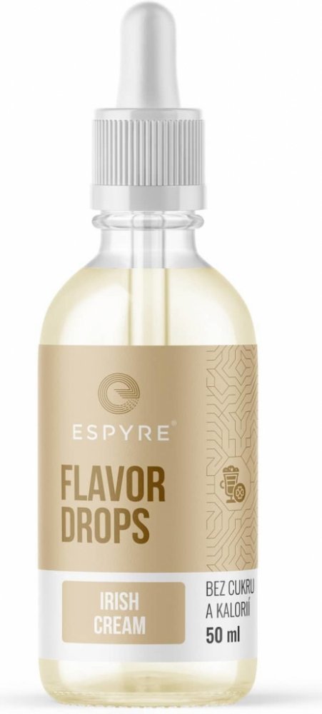 Espyre Flavor Drops Irish cream 50 ml. Flavor Drops jsou kapičky, které slouží k ochucení a oslazení jakéhokoliv jídla nebo nápoje. Skvěle se hodí třeba do kaší, jogurtů, kávy, vody nebo je můžeš použít třeba při pečení - fantazii se v tomto směru meze nekladou. Jejich velkou výhodou je, že k ochucení stačí opravdu minimální množství, takže ti lahvička vydrží pěkně dlouho. Flavor Drops neobsahují ...