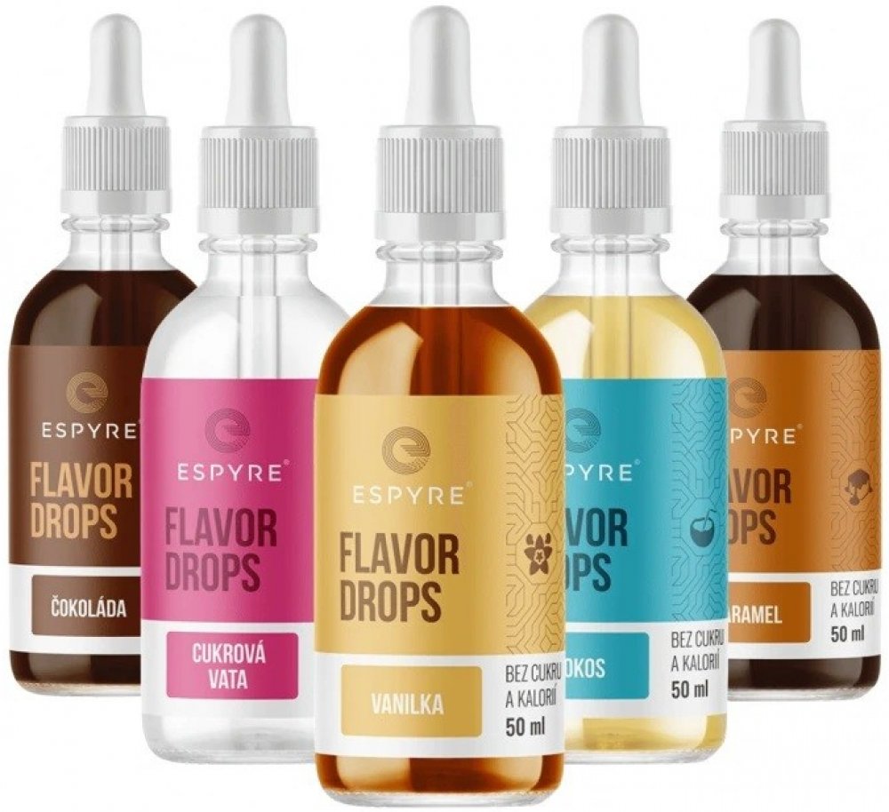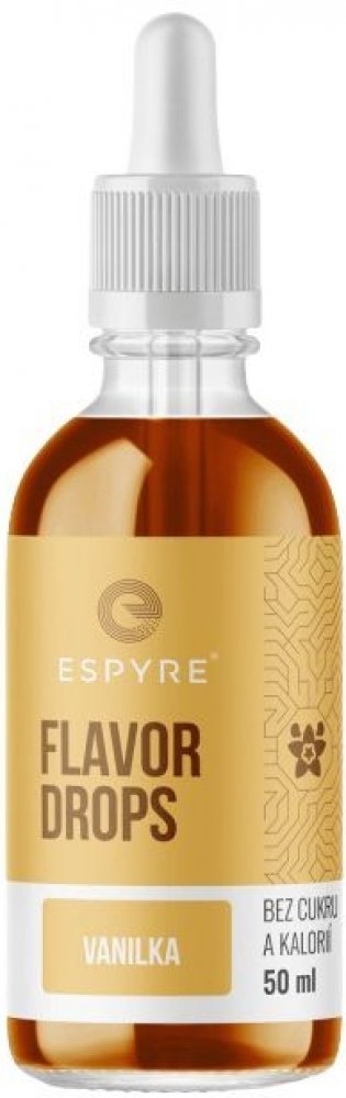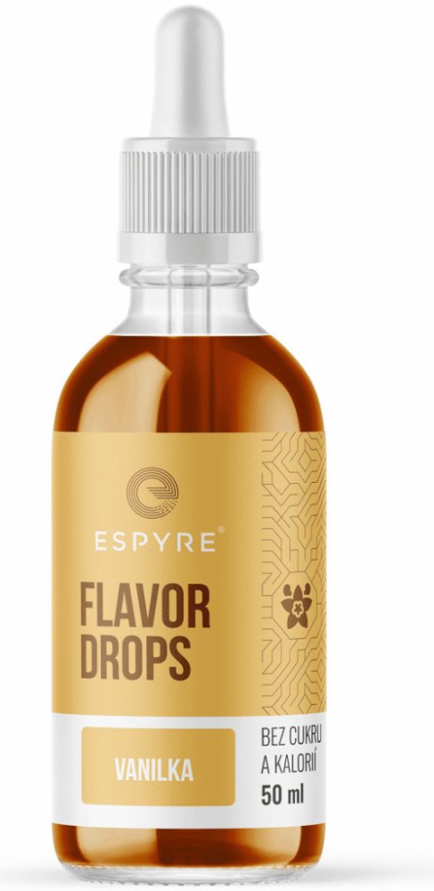 Espyre Flavor Drops vanilka 50 ml. Flavor Drops jsou kapičky, které slouží k ochucení a oslazení jakéhokoliv jídla nebo nápoje. Skvěle se hodí třeba do kaší, jogurtů, kávy, vody nebo je můžeš použít třeba při pečení - fantazii se v tomto směru meze nekladou. Jejich velkou výhodou je, že k ochucení stačí opravdu minimální množství, takže ti lahvička vydrží pěkně dlouho. Flavor Drops neobsahují žádn...