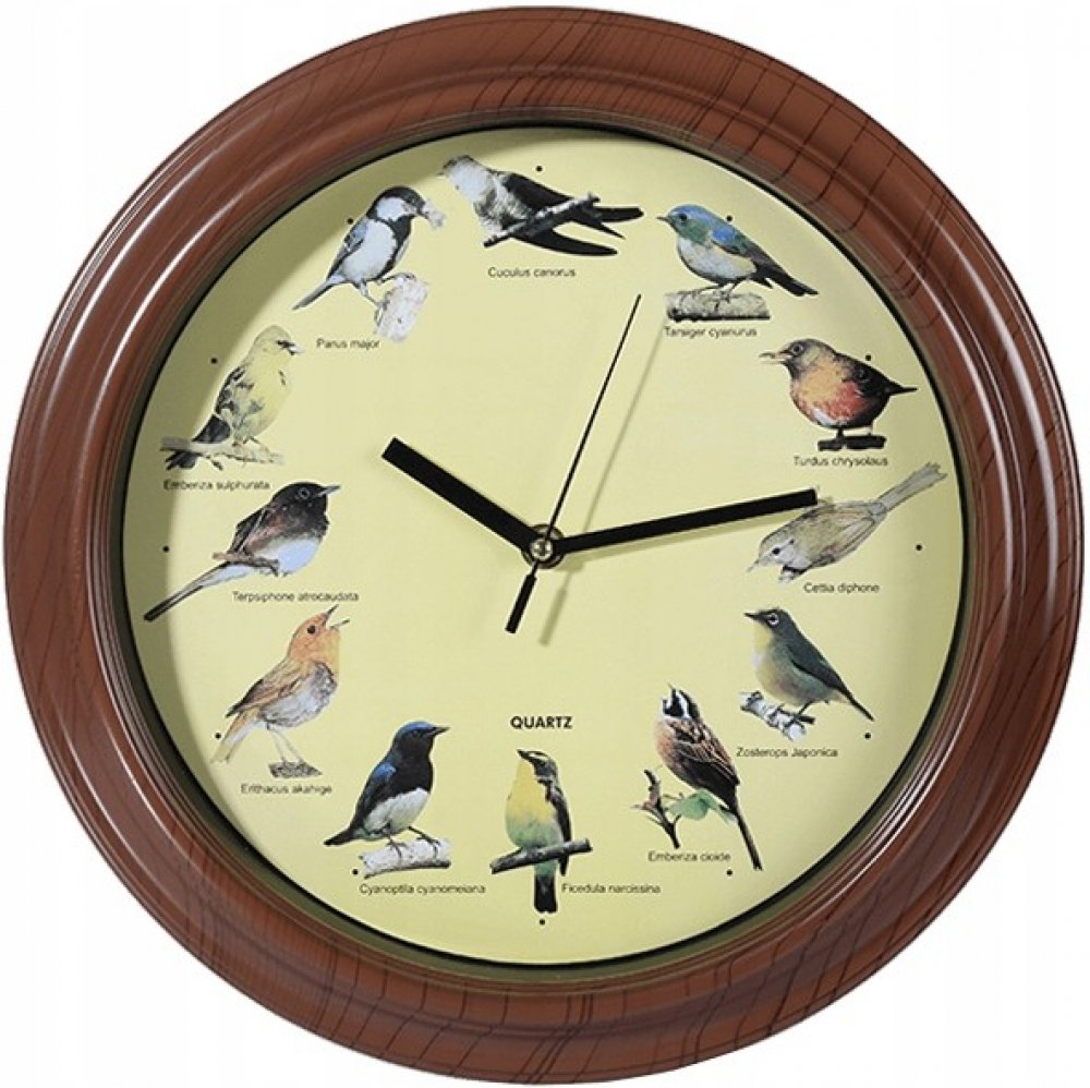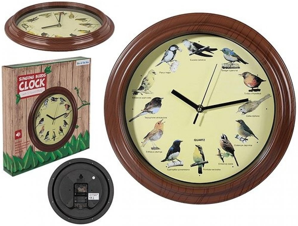 NÁSTĚNNÉ HODINY SE ZVUKEM - ZVUKY PTÁKŮ️Hodiny k zavěšení na zeď v pouzdře připomínajícím dřevo. Na ciferníku jsou místo hodin vyobrazeni ptáci. Skvělý dárek pro milovníky ptáků, ochránce přírody a originální lidi. Hodiny mají navíc možnost vydávání ptačích zvuků v určitý čas.️Gadget na první pohled:nástěnné hodiny, které vydávají zvuky ptákůprůměr: 33 cmmísto čísel s časem různé druhy ptákůnástěn...