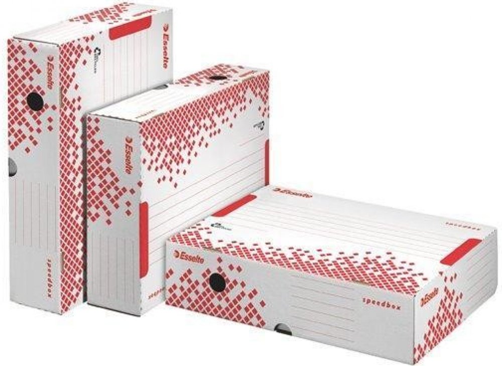 Archivační systém krabic Speedbox šetří čas a energii při skládání. Složení trvá pár vteřin, jedním pohybem, bez potřeby manuálu. Inovativní konstrukce rychlého složení, která šetří čas. Široké otevření krabice poskytuje snazší vložení dokumentů. Pro dokumenty formátu A4, desky na spisy A4 i papíry formátu Foolscap. Ideální velikost pro archivaci v policích, určeno pro vertikální i horizontální ar...