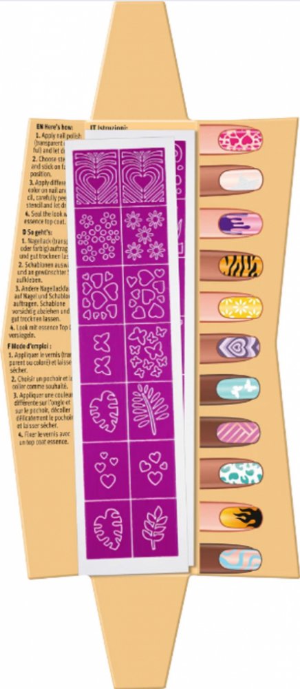 Proměňte své nehty během okamžiku s Nail Art Stencils od Essence na absolutní umělecké dílo. Šablony umožňují vytvořit nespočet designů, které odpovídají nejnovějším nehtovým trendům. S touto praktickou pomůckou si na své přijdou jak začátečníci, tak profesionálové v nehtovém designu. Vykouzlete dechberoucí a umělecké nehty.