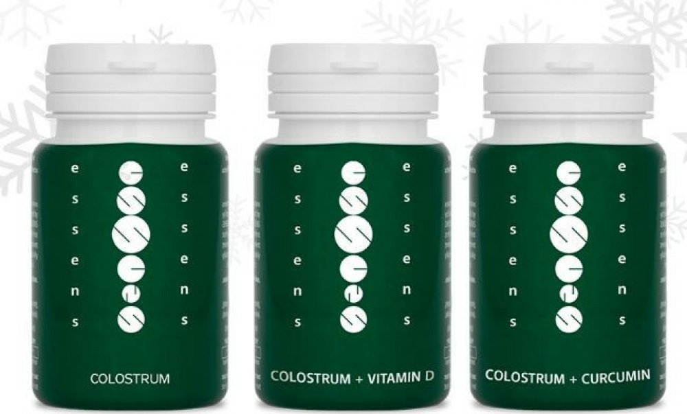 Colostrum + Vitamin D, 60 kapslí – Doplněk stravy vyvinutý a vyráběný pod farmaceutickým dohledem. Má v sobě aktivní látky Colostrum, Provitamin D3 a vysoký obsah colostra lgG40 ve výši 400mg v jedné kapsli. Využívá všech benefitů doplňku stravy Essens Colostrum, avšak v kombinaci s Vitaminem D navíc působí proti odvápnění organismu a řídnutí kostí, napomáhá posílení pevnosti kostí a zubů, přispívá ke snížení vysokého krevního tlaku.