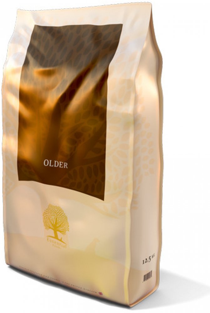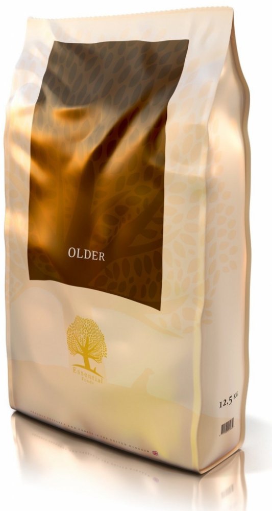 Essentialfoods Older je kompletní krmivo upravené a vhodné pro starší psy BEZ OBILOVIN. Psi mohou začít s přechodem na Older, když dosáhnou 2/3 z průměrné délky života.