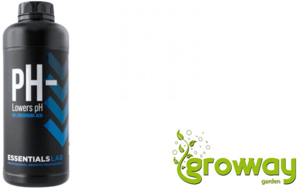 Essentials LAB pH - je koncentrovaná kyselina (81% kyselina fosforečná), kterou lze v malých kontrolovaných dávkách použít ke snížení pH (zvýšení kyselosti) živných roztoků. Důkladně promíchejte a změřte kalibrovaným pH-metrem, abyste dosáhli požadovaného pH. Ideální pro úpravu velkých objemů živných roztoků.