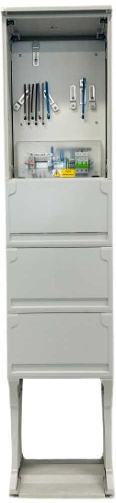 Skříně jsou vyrobeny v celoplastovém provedení z termosetu z SMC-prepreg materiálu, který je odolný proti povětrnostním vlivům, vodě a UV zářením. Prodloužení životnosti je navíc zajištěno UV ochranným nástřikem v barevném odstínu RAL7035. Materiál nepodléhá korozi, zachovává tvar, je nesnadno hořlavý kategorie B a samozhášivý. Vnitřní výzbroj dvousazbová slouží pro měření dodané nebo odebrané spotřeby el. energie. Použití: FVE fotovoltaické elektrárny , BPE bioplynové elektrárny , KOG kogenerační jednotky. Obsahuje nastavitelný držák 4Q/6Q elektroměru a HDO,jistič přijímače HDO-2B1,svorkovnice PEN,jistící prvek (vypínač 63A 3P) na vývodu,plombovatelný kryt a místo pro hlavní jistič a ovládací relé OR. Silové vodiče jsou jednotné o průřezu 10mm2 pro osazení hlavního třífázového jističe do 63A.