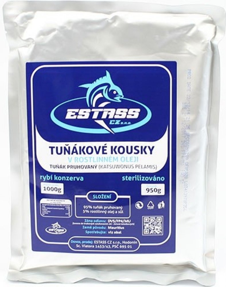 95% tuňák pruhovaný (katsuwonus pelamis), 5% rostlinný olej a sůl