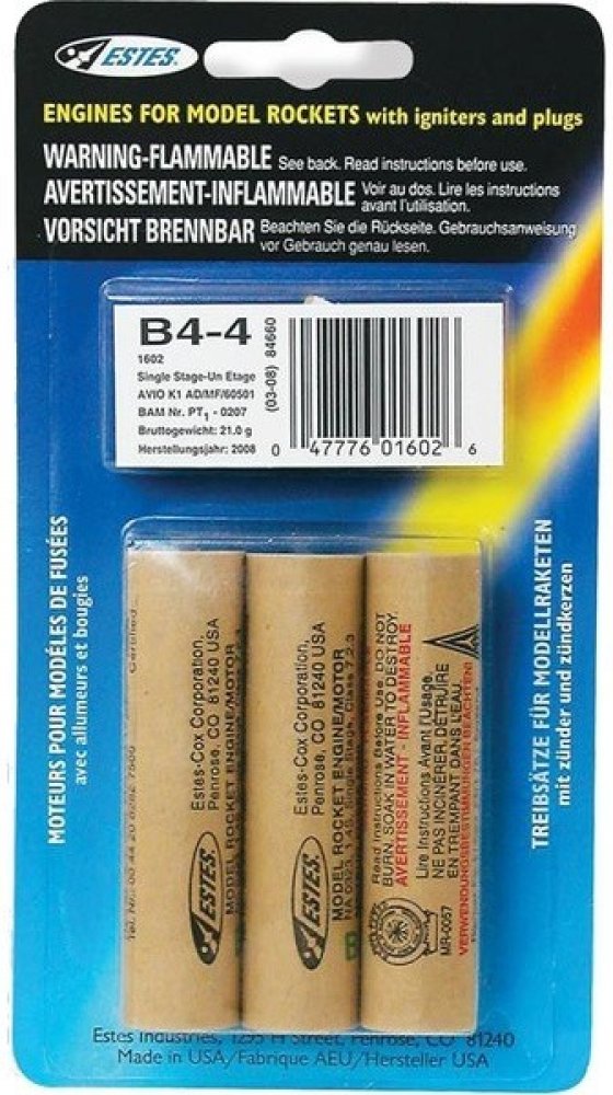Balení obsahuje 3ks raketových motorků včetně palníků, návod k použití.