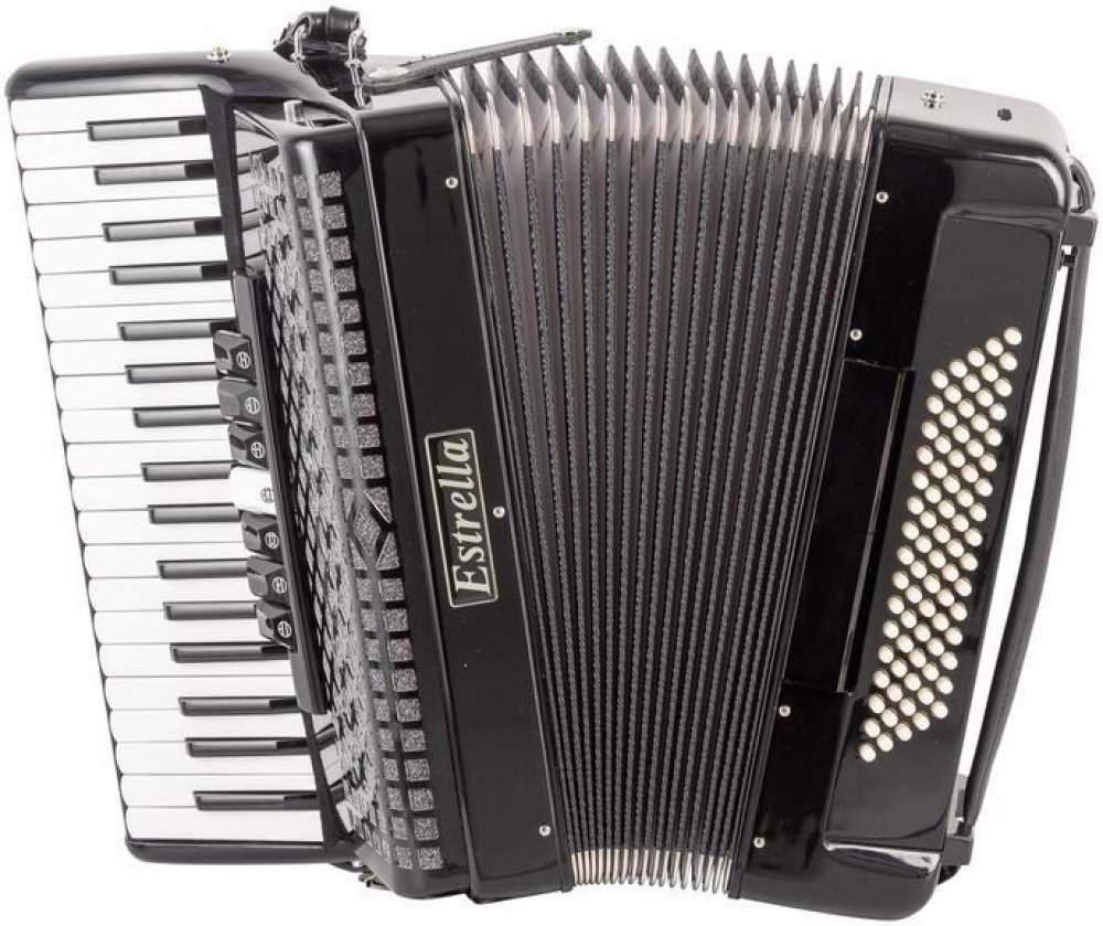 klávesový akordeon, 37 kláves, 96 basů, 3 hlasy, 7 registrů, hmotnost 10 kg, v ceně polstrovaný obal