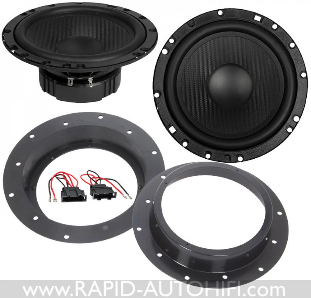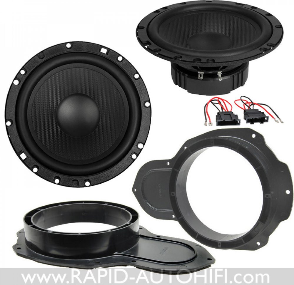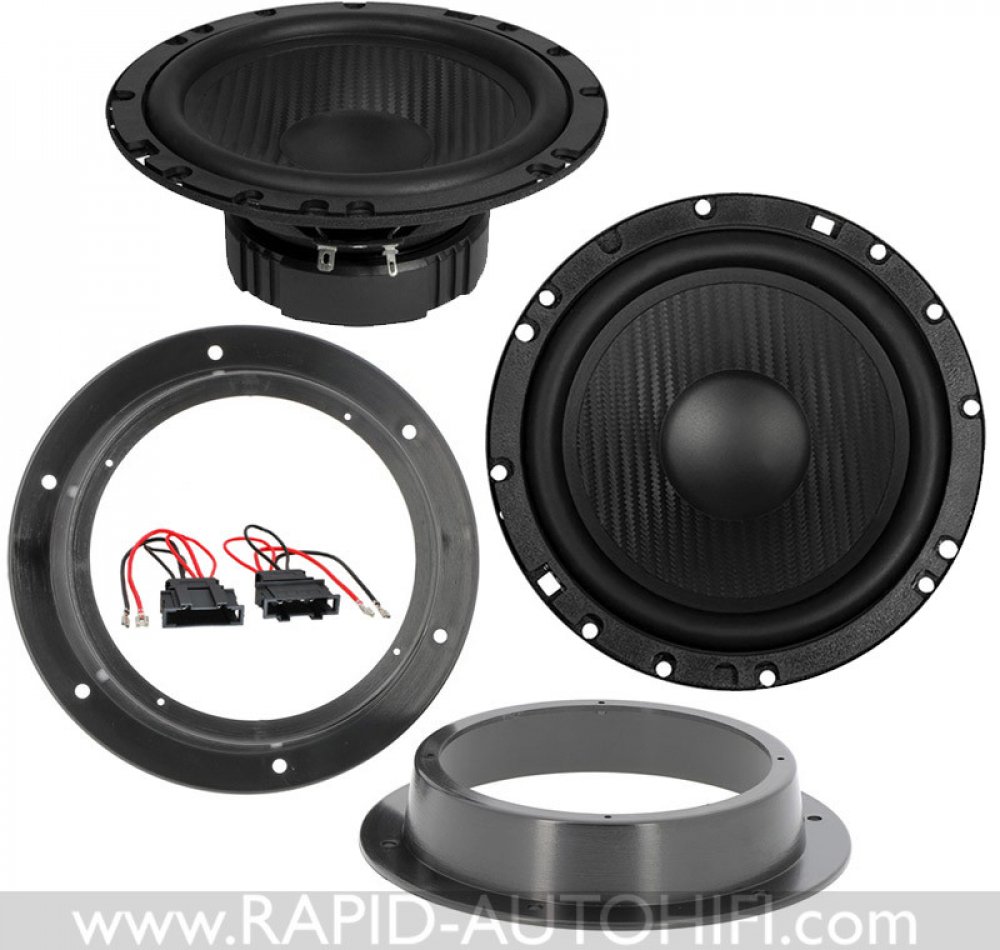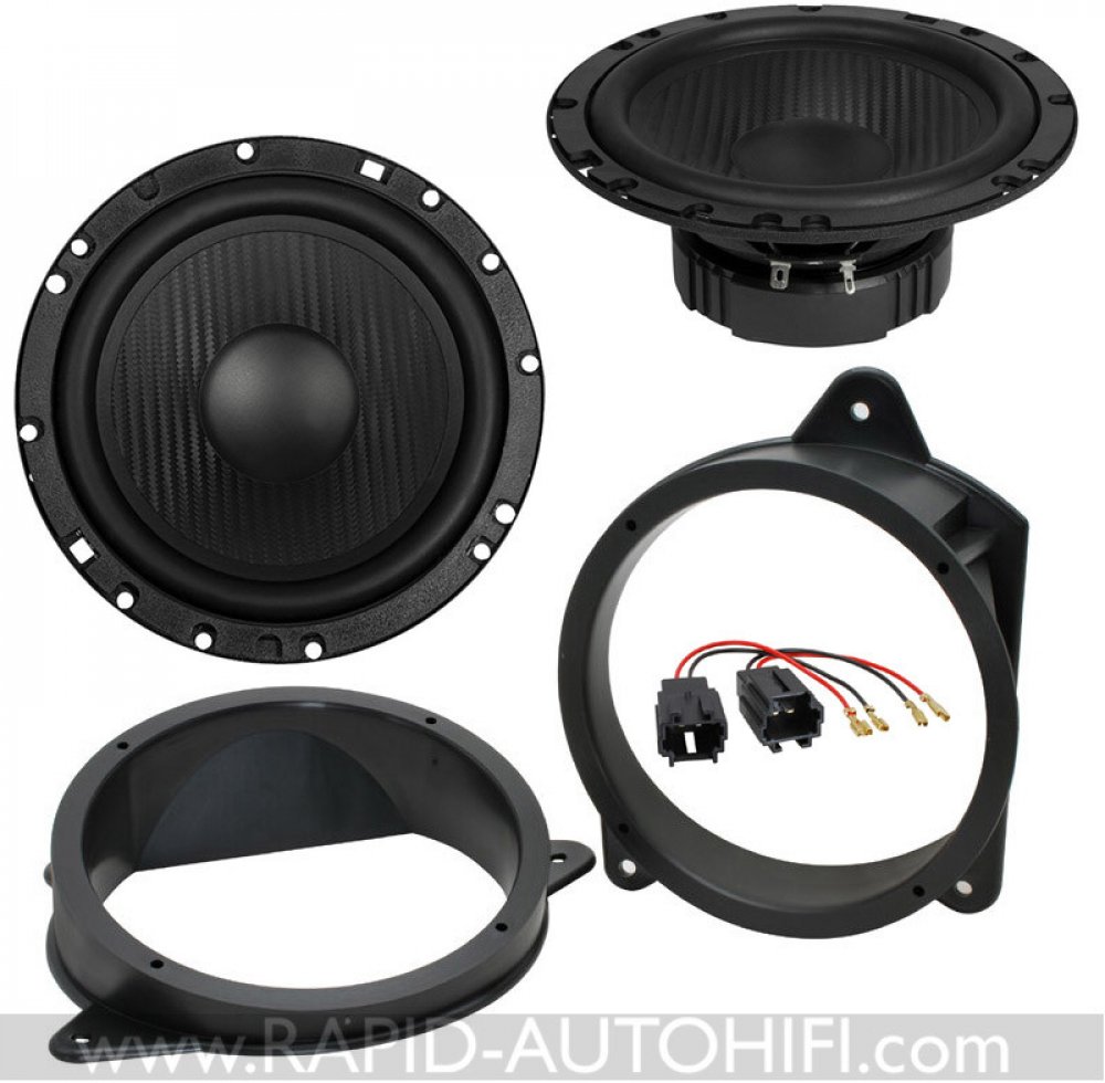Obsahuje kvalitní 1-pásmové 16.5 cm kickbass středobasové reproduktory HZ6.2W řady Horizon německého výrobce ESX a vše potřebné pro korektní výměnu. Tedy redukční plastové kroužky pod reproduktory a kabelové redukce z originálního kabelového svazku ŠKODA na klasické reproduktorové konektory.