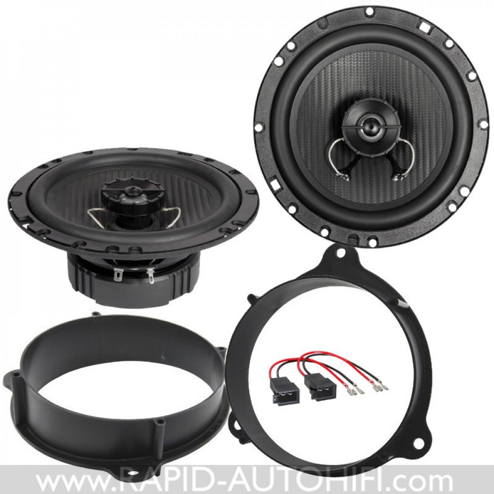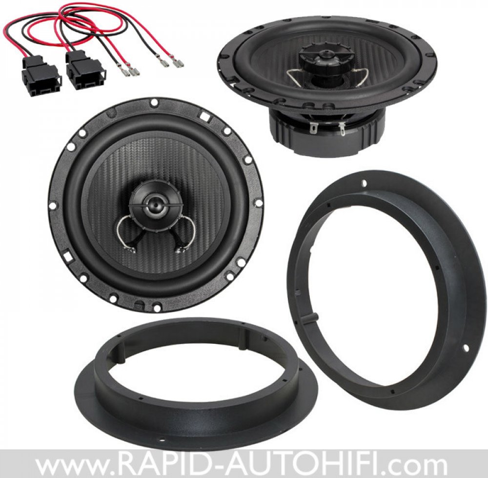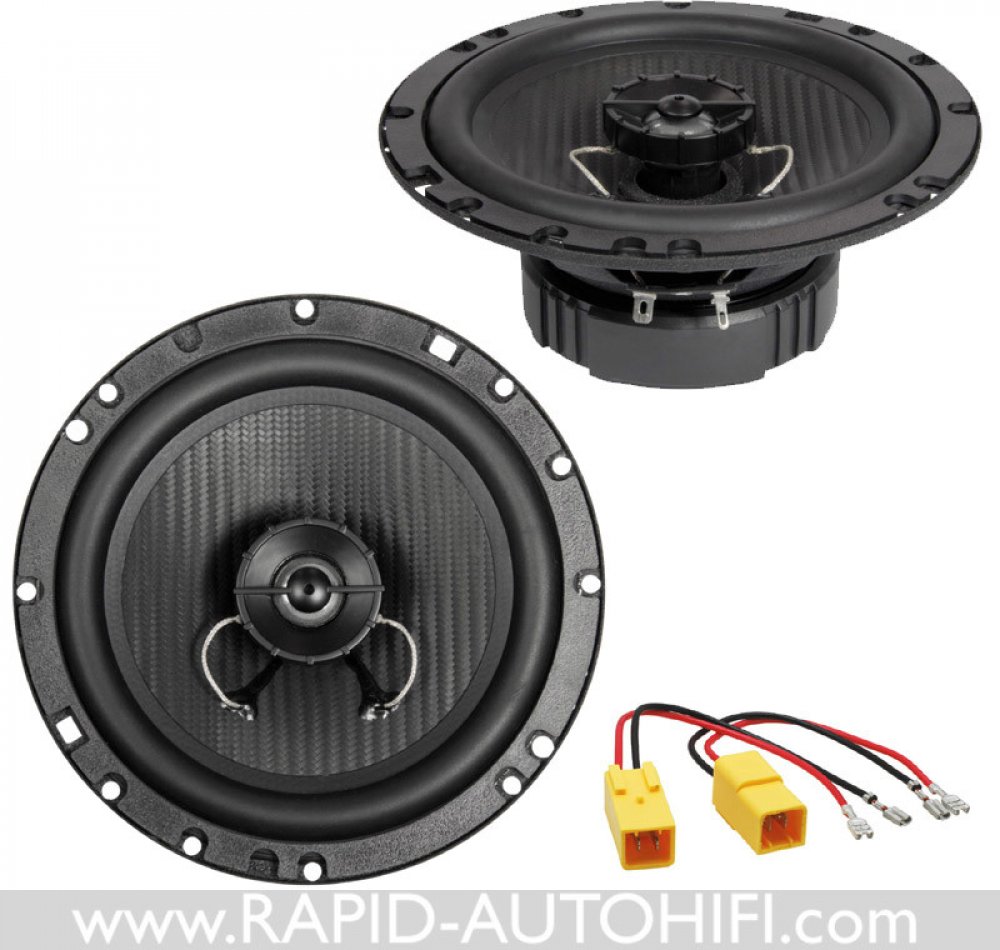 Obsahuje výkonné koaxiální 2-pásmové reproduktory řady Horizon německého výrobce ESX HZ62 a vše potřebné pro korektní výměnu. Tedy redukční plastové kroužky a kabelovou přechodku (adaptér) z originálního kabelového svazku Peugeot na klasické reproduktorové konektory.