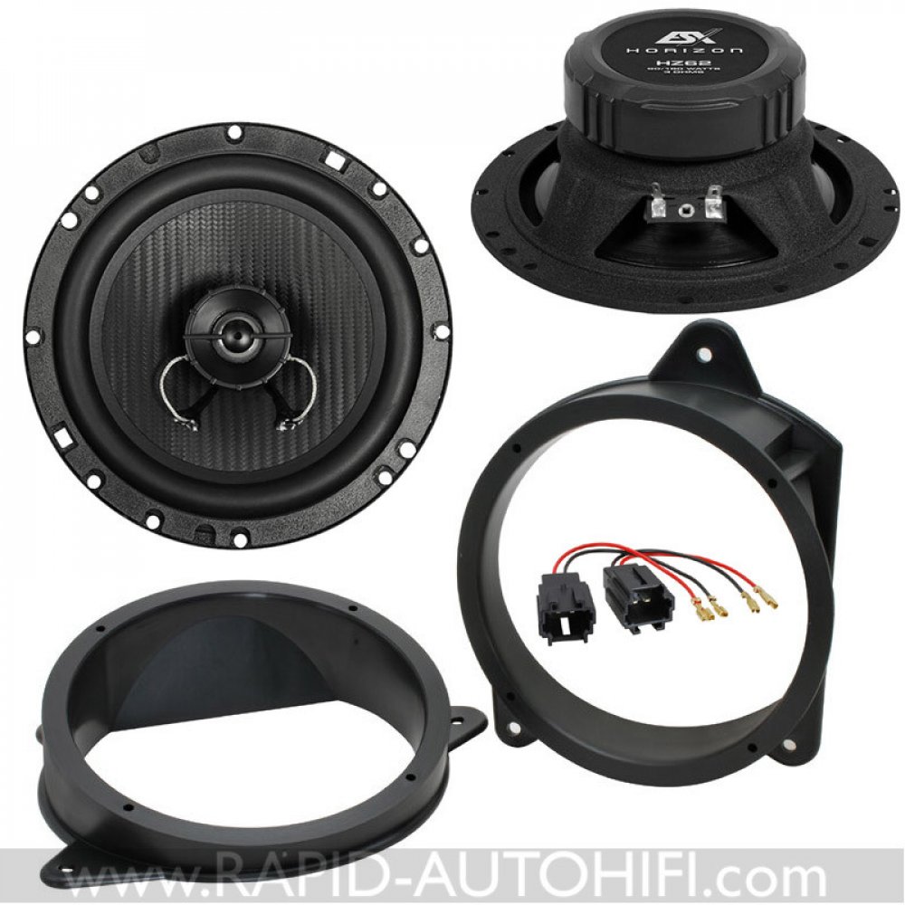 Obsahuje výkonné koaxiální 2-pásmové reproduktory řady Horizon německého výrobce ESX HZ62 a vše potřebné pro korektní výměnu. Tedy redukční plastové kroužky a kabelovou přechodku (a...