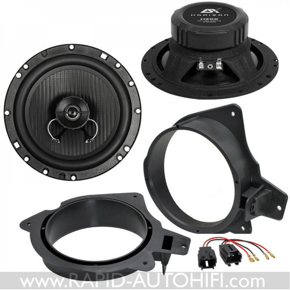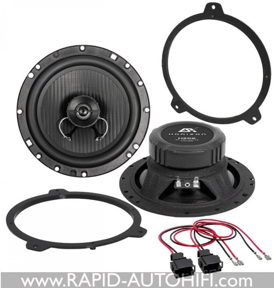 Obsahuje kvalitní koaxiální 2-pásmové reproduktory HZ62 řady Horizon německého výrobce ESX a vše potřebné pro korektní výměnu. Tedy montážní redukce a kabelové redukce z originálního kabelového svazku TOYOTA na klasické reproduktorové konektory.