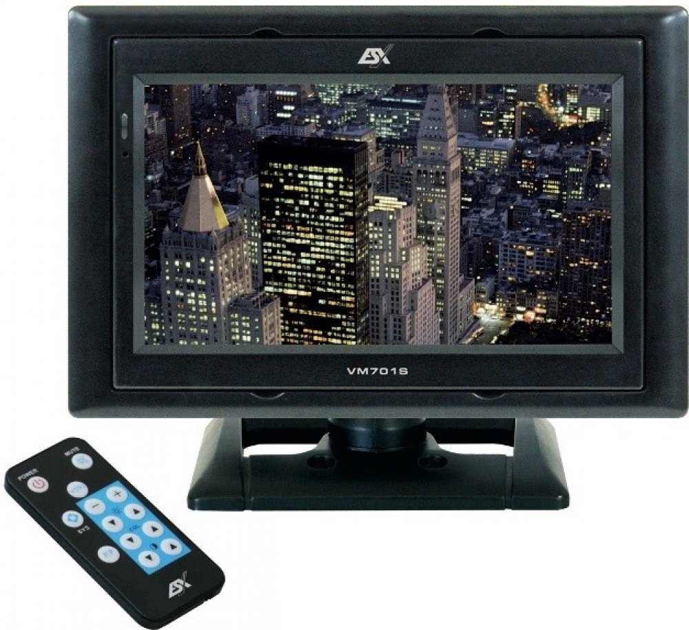 ESX Vision VM7011S: Samostatný LCD monitor s úhlopříčkou 7" ( 17,8 cm ), uhlopříčka 7" (17,8cm), obrazová norma: PAL/NTSC, poměr obrazu: 16:9, rozlišení: 1200x234px, rozlišení RGB: 480x234, Svítivost: 350cd/m2, viditelnost z úhlu: 160stupňů, kontrast: 300:1, vstupy/výstupy: 2x AV vstup / 1x AV výstup + Video výstup přes originální propojovací kabel ( součástí balení ), IR čidlo pro bezdrátová sluc...