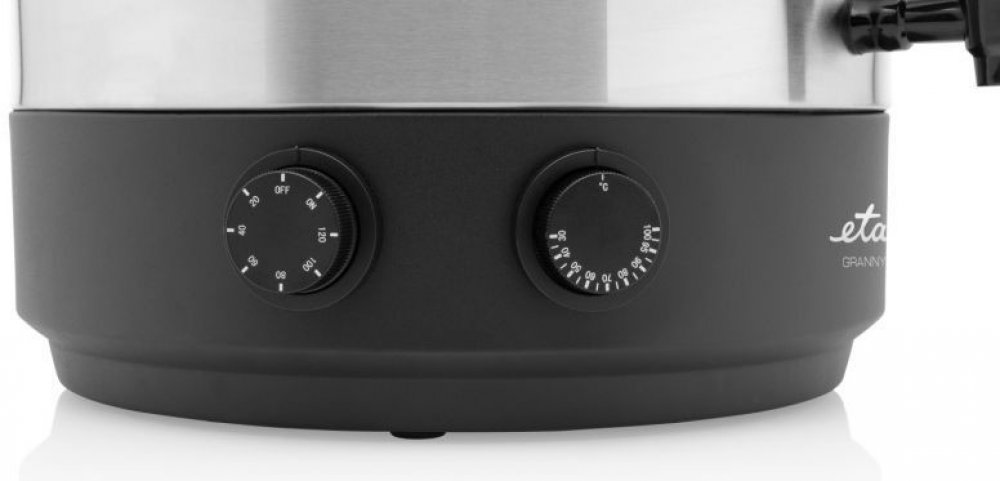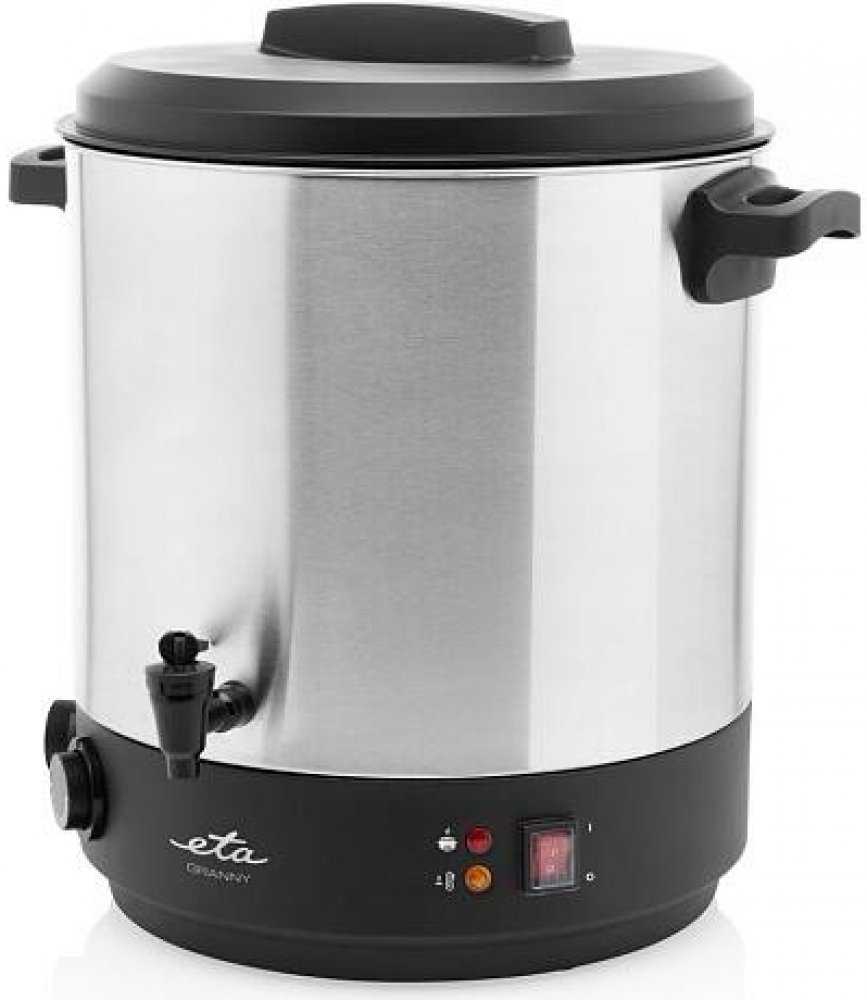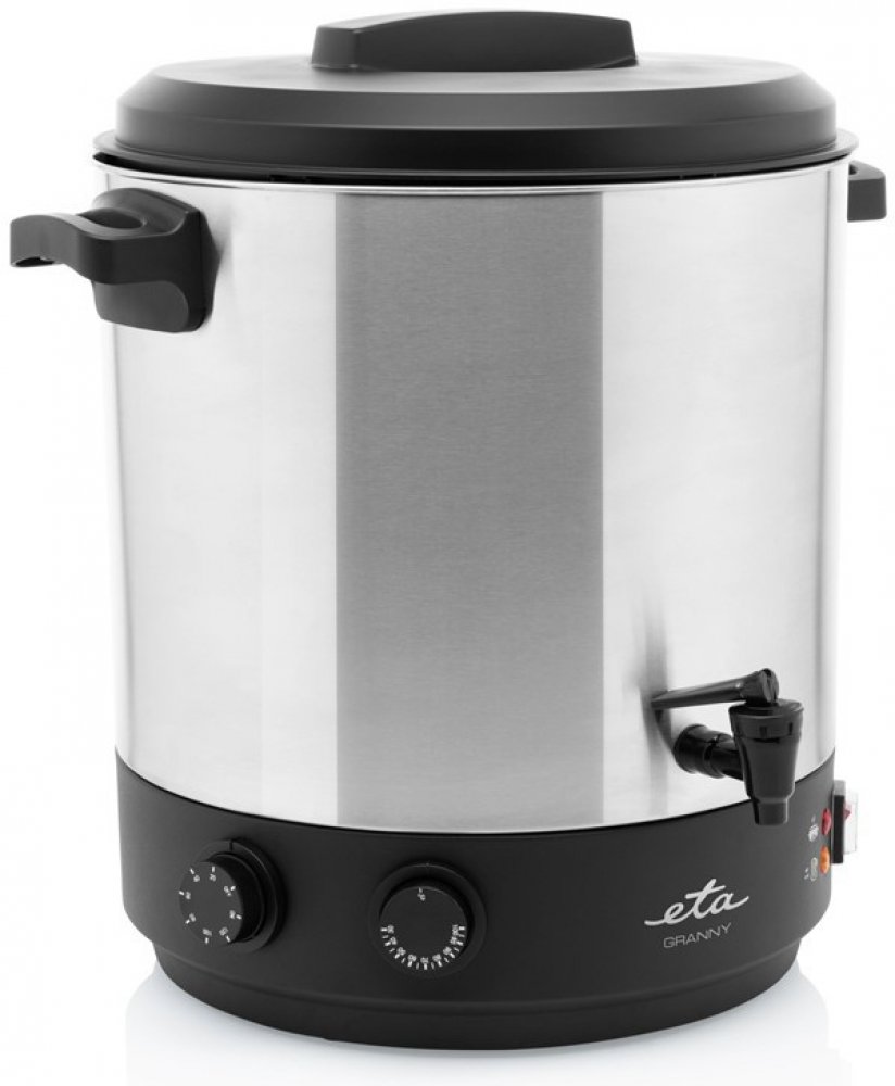 Zavařovací hrnec ETA Granny je vybaven kvalitní nerezovou nádobou o objemu 25 litrů, která pojme až 14 litrových zavařovacích sklenic. Celý proces zavařování vám usnadní odnímatelná nerezová mřížka, plynule nastavitelný termostat (30–100 °C) a nastavitelný časový spínač (na 20–120 minut).
