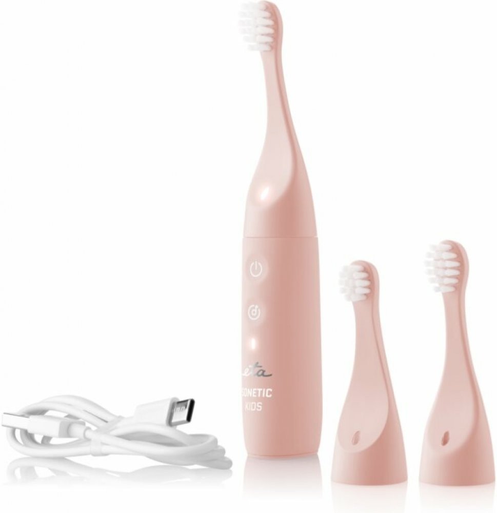 sonický kartáček • pro děti • Až 18000 pohybů/min • USB-C nabíjení • výdrž 50 dnů • 2 režimy čištění • časovač 2 minuty (rozdělený do 4 úseků) • integrované světlo • melodie pro udržení pozornosti při čištění • obsah balení: 2× hlavice kartáčku, USB kabel