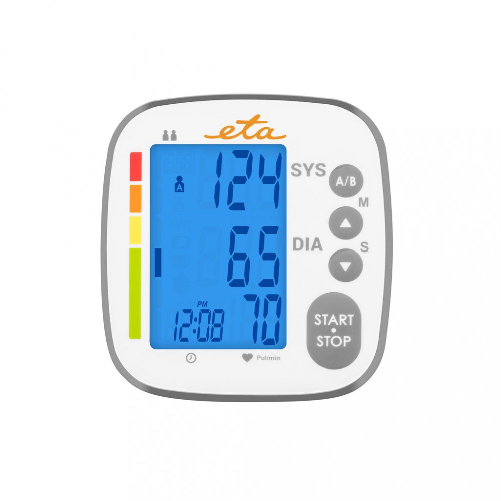 Tlakoměr ETA329790000 je určen pro pohodlné domácí použití, při kterém vám během chvilky změří systolický i diastolický tlak. Monitoruje také puls, na jehož případnou nepravidelnost vás okamžitě upozorní. Měření tlaku probíhá oscilometrickou metodou s přesností +/- 3 mmHg.