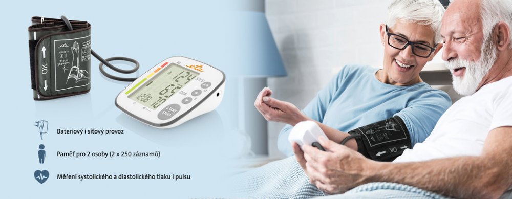 Změřit si tlak v pohodlí domova je opravdu snadné, zvlášť když máte spolehlivého pomocníka. Domácí tlakoměr na paži ETA329790000 vás navíc nenechá na holičkách, ani když mu zrovna dojdou baterky.
