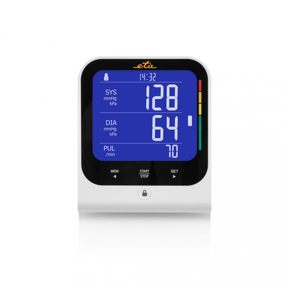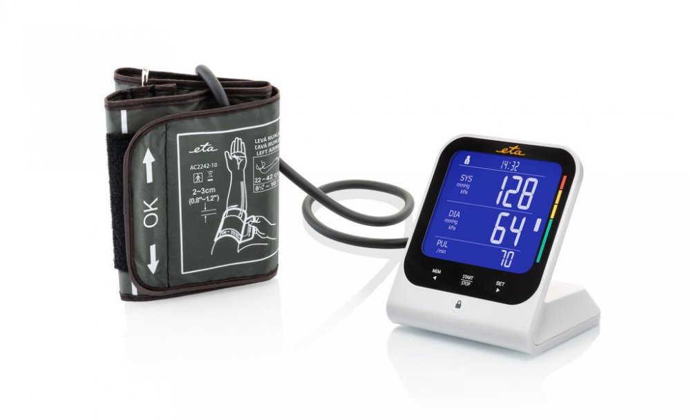 ETA bílé kombinované 60 měření na paži s flexibilním napájením (baterie + adaptér) pro detekci arytmií/ECG pro páry (2 profily) oscilometrické automatické 22 - 42 cm univerzální dvoudílná s hadičkou 445 g 110 x 120 x 105 mm pro zálohování v cloudu