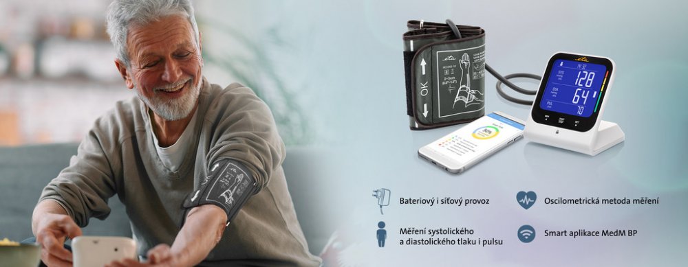 Tlakoměr v moderním designu se umí pomocí bezdrátové technologie propojit s unikátní MedM BP aplikací. Dohromady s vaším chytrým telefonem tak tvoří skvělý tým, který vám umožní sledovat, pravide...