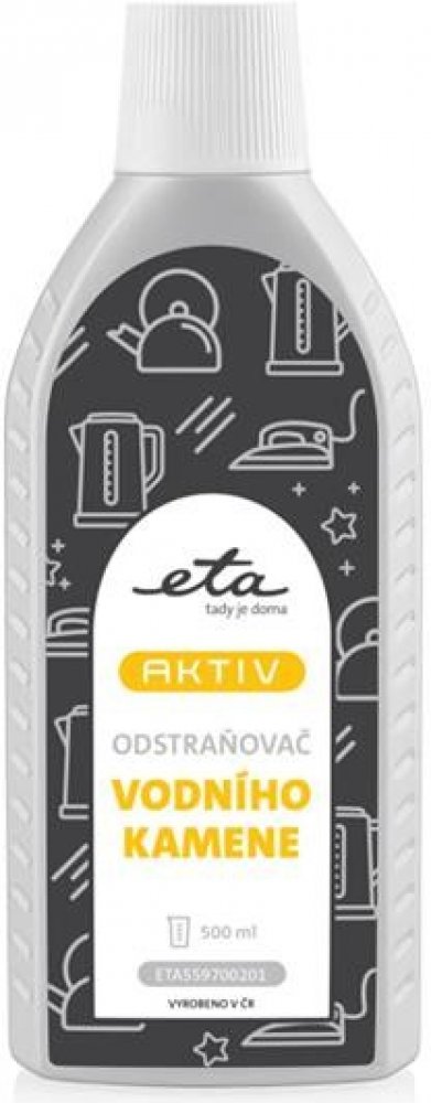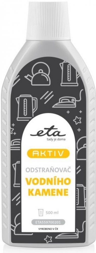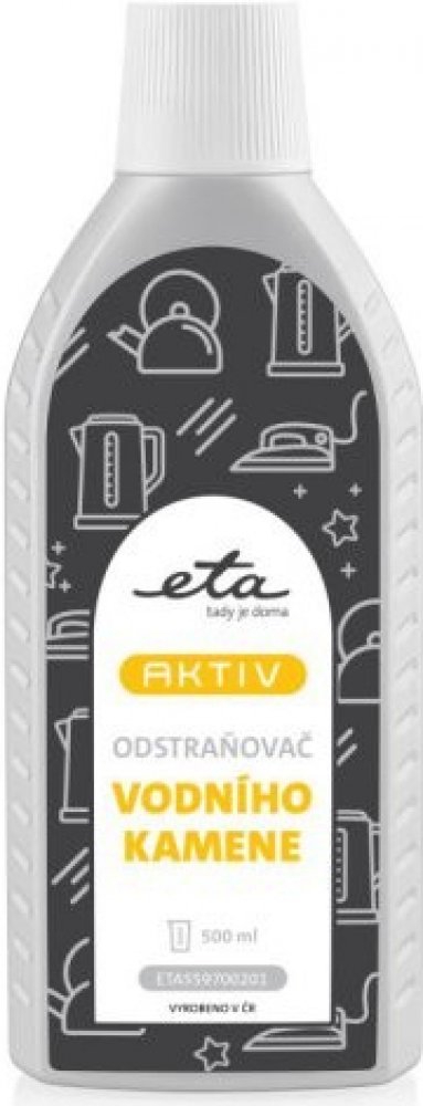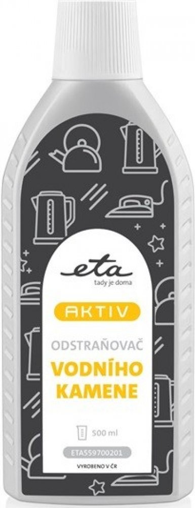 Čisticí prostředek ETA důkladně vyčistí vnitřek rychlovarné konvice či žehličky a zbaví vás vodního kamene v těchto domácích spotřebičích. Pokud odstraňovač vodního kamene používáte pravidelně, prodlužujete životnost spotřebičů. Ušetříte tak nějakou tu korunku v peněžence. Láhev má objem 0,5 litru.