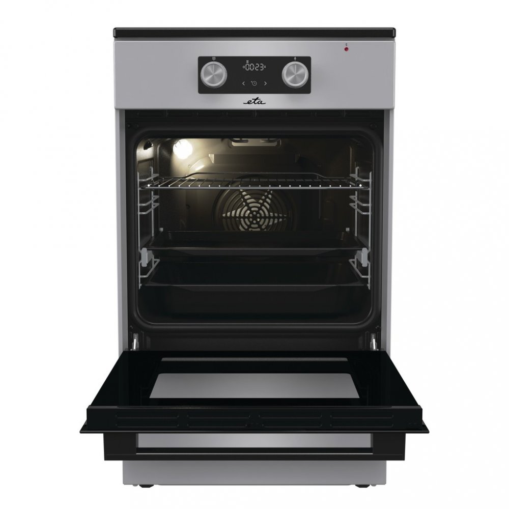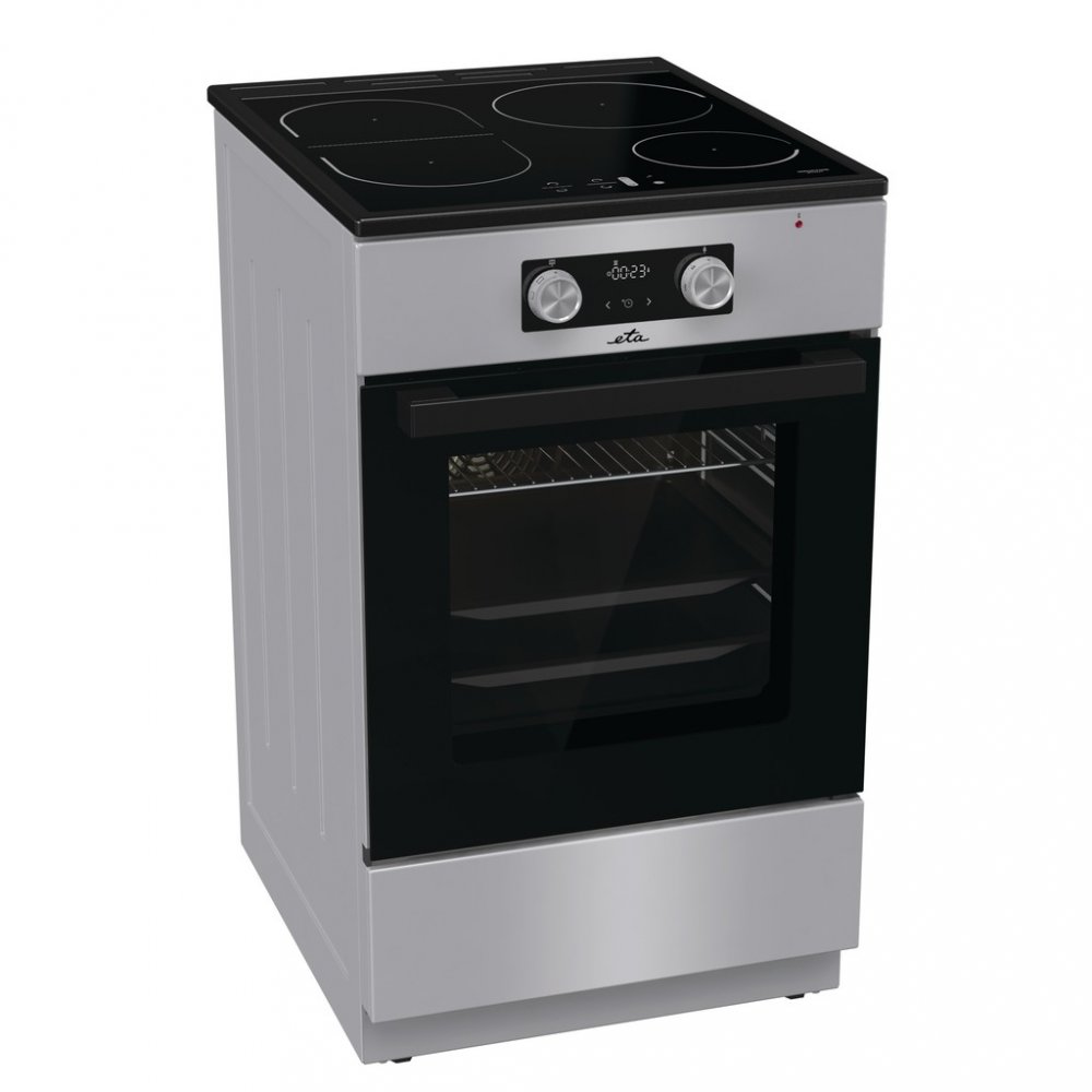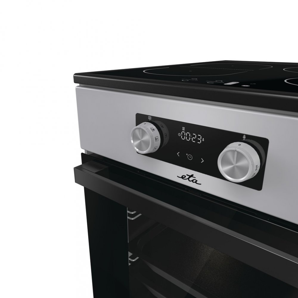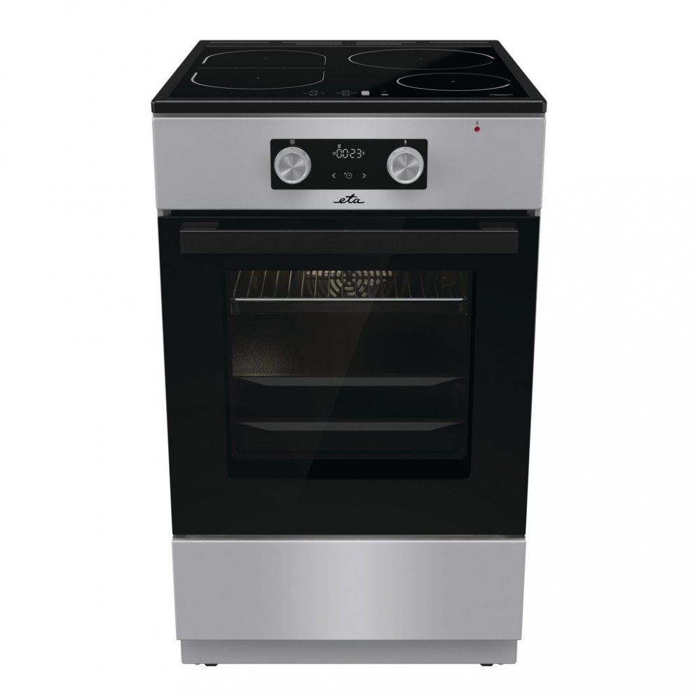 Elektrický sporák ETA s indukční varnou deskou a 9 funkcemi. Objem trouby 70 l, LED displej, teleskopický výsuv, funkce Activapor
